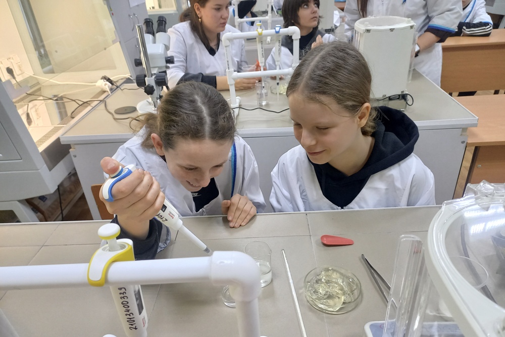 Ученики агротехнологических классов приняли участие в увлекательном лабораторном практикуме под названием "Клонирование растений in vitro". Под руководством преподавателя агротехнологических дисциплин К. Е. Мельниковой ребята погрузились в мир микроскопических исследований. Дети с азартом осваивали работу с микроскопами, учась различать здоровые и больные растения.